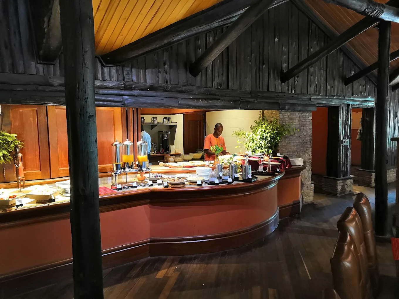 Warm wood tones, natural textures and African décor