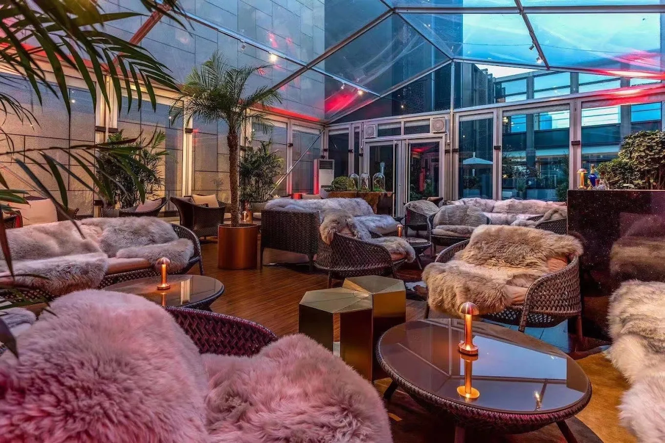 The overall ambiance is polished and serene, inviting guests into a tranquil sanctuary amid the bustling city.